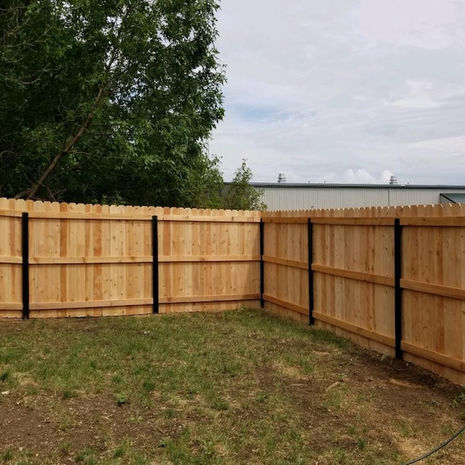 Wood is an economical choice for privacy fencing. The pickets are usually 6-8" wide and come in 4.5,6 and 8' heights. The most common style of privacy fence is dog-eared. A dog-ear fence makes it easier to get the look of a straight line along the top. Some people like to have a flat-top fence. Although this style make take a little more effort to get the top even it is also very popular. Vertical pickets can be installed in a shadow-box style which is commonly known as a "good-neighbor" fence. When installing the pickets vertically the fence can also have a picture frame look. Another option is to run the pickets horizontally. This can be done in rough, smooth or basket-weave styles. The posts for a wood privacy fence can be cedar, treated wood or steel. For steel posts we offer the typical 2 3/8" as well as the PostMaster.
